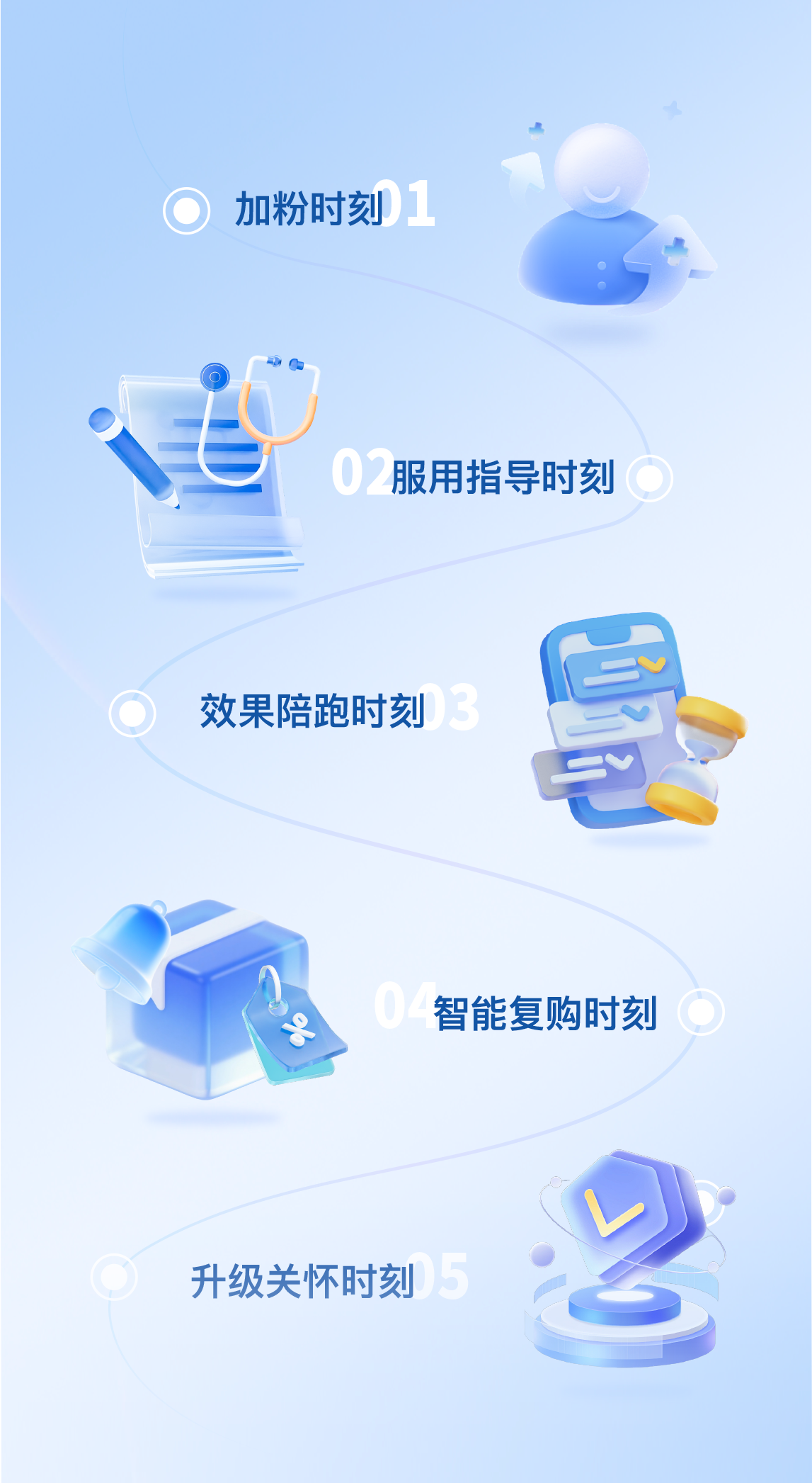 在用户服用的第7天、第15天、第30天,系统根据标签自动推送对应的“阶段性健康反馈”或“生活建议”。将漫长的“效果空窗期”切割成一个个小的“获得感节点”,让用户在体感出现前,先感受到服务的价值。
